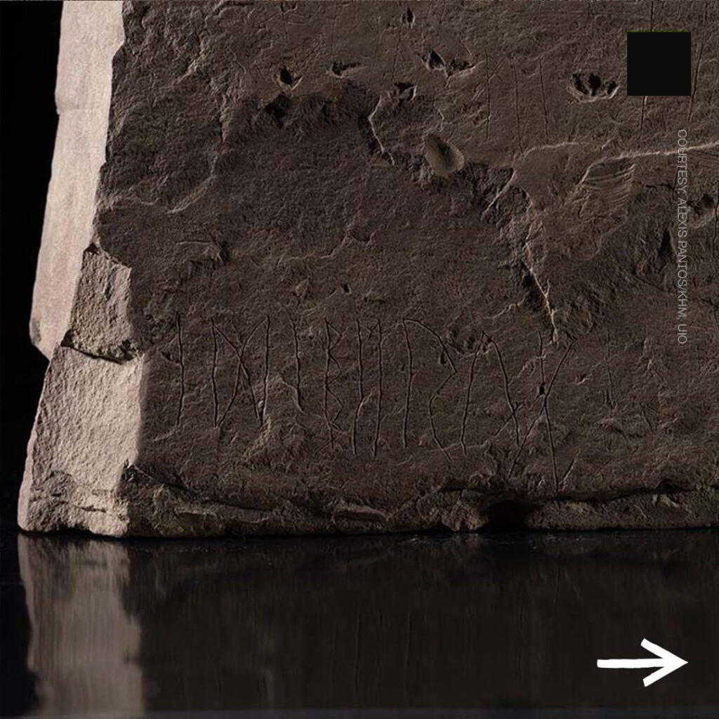 Þarna eru einnig þrír rúnastafir á hægri hlið steinsins sem stafa fyrstu rúnir fúþarksins; f, u og þ – líkt og a,b, c er í rómversk-latneska stafróinu sem við notumst við nú á dögum.